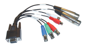 | This A/V output cable is the breakout output cable included for the Osprey® 530, Osprey 540 and Osprey 560. Left/right unbalanced stereo audio via RCA connectors, composite output (BNC), and S-Video (mini-DIN) are all provided. The A/V output cable is included with the Osprey 530 (Part Number 95-00449), Osprey 540 (Part Number 95-00190), and Osprey 560 (Part Number 95-00434). |